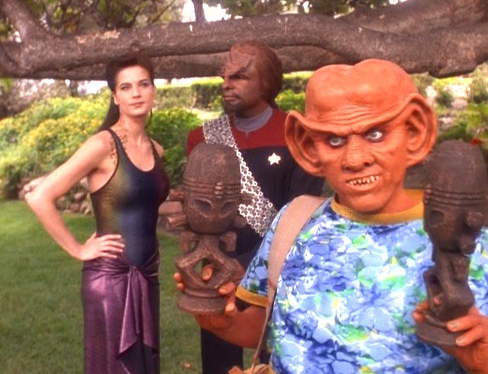 Trivial Note – Not to pick on him, but this was the second of two episodes to be directed by Alexander Siddig, who plays Dr. Bashir (and who recently appeared on Game of Thrones as Prince Doran Martell). He and Armin Shimerman wanted to take a supposedly funny concept and push it into more serious territory. The producers wanted the episode to be a complete farce. It ended up being a farce, in all the wrong ways.