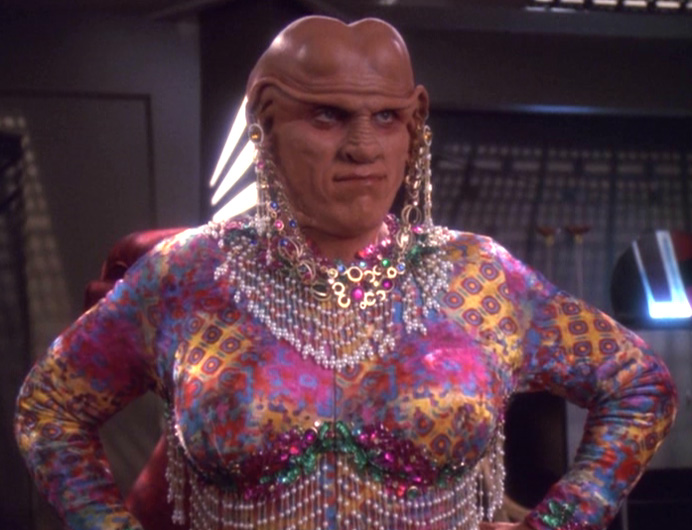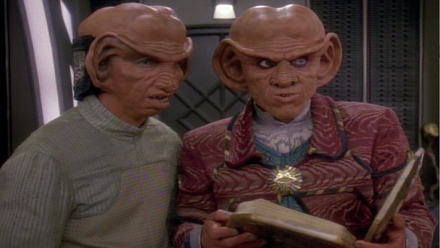 Trivial Note – This is the third of four episodes to deal directly with the situation faced by Ferengi females, after “Rules of Acquisition” and “Family Business”, and before “Profit and Lace”. (It’s also mentioned or is part of a B-plot in several other episodes.) This move towards gender equality is the only real ongoing storyline in the Ferengi farces, and the story is worthwhile, even as the episodes dip in quality as it goes along.