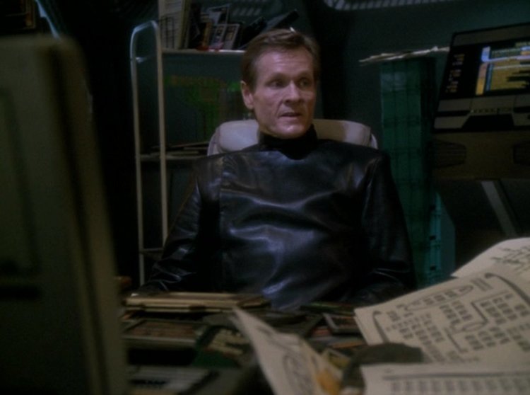 Even by early DS9 standards, this is a doofy episode. That’s actor Chris Sarandon up there, and if you recognize him, it’s probably from his work in great movies like Dog Day Afternoon or, more likely, The Princess Bride. Here, he plays some rando con artist who acquires a device that controls luck…or something like that. He starts a casino-type place that hurts Quark’s business, which in turn leads Quark to set up a racquetball match between Bashir and O’Brien, which is also affected by this luck device, which has now been replicated and enlarged by con artist casino-man. Got all that? No? Well, it doesn’t play any better on screen, either.