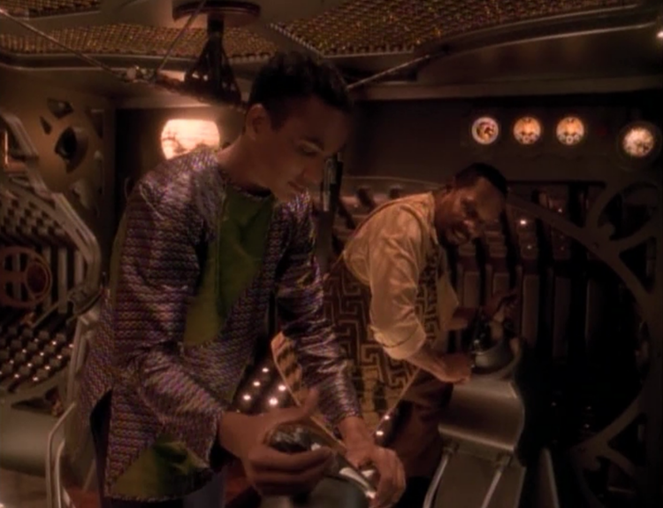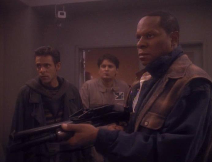 Trivial Note – This is LeVar Burton’s directorial debut on the series. He starred in TNG and had directed episodes of it and Voyager prior to this. He would become one of the show’s regular directors going forward. The Breen make their first on-screen appearance in this episode, as the villains at the end. This comes after around five years of random references to the species on multiple Trek shows. Their voices were based on Lou Reed’s amazingly horrible album Metal Machine Music. This is the second of four episodes to partially film at Soledad Canyon in Southern California. Conditions again were terrible. Fortunately for Nana Visitor (who’d already endured shooting “The Homecoming” there), she would not be involved in the canyon-set parts of “The Ship” and “Rocks and Shoals”. Also, this episode’s plot is basically a riff on the John Wayne classic The Searchers, which is one of the greatest movies of all time.