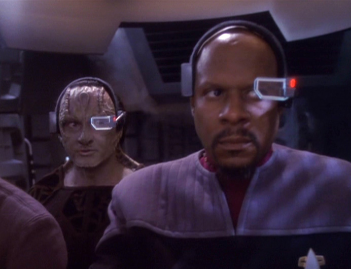 Trivial Note – Tosk and the Hunters were the first Gamma Quadrant species to be seen on DS9 (discounting Odo, whose origin was unknown at this point). This also marks the first time a Gamma Quadrant species undertakes hostile action on the station. The lead Hunter was played by Gerrit Graham, who was the second choice for Odo. MacDonald appears in multiple Trek roles over the years, effective each time, and returns to DS9 as a Jem’Hadar in season four’s “Hippocratic Oath”, where he again shares many scenes with Colm Meaney. Finally, Odo firmly establishes that he doesn’t carry a weapon, on-duty or off. The only time he ever does (even when he’s a Solid in season five) is in season three’s “Heart of Stone”, and that’s in an unusually desperate situation.